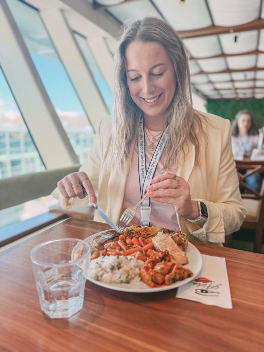 Ein fester Bestandteil der Schiffsbesichtigung ist das gemeinsame Mittagessen im Buffetrestaurant. Plötzlich wird aus dem Erkunden ein richtiges Ankommen an Bord. Zwischen verschiedenen Gerichten, kleinen Kostproben und Gesprächen entsteht genau dieser Moment, in dem man das Bordgefühl ganz in Ruhe auf sich wirken lassen kann.