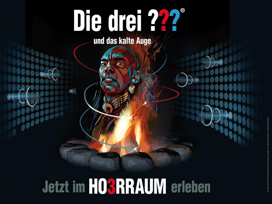 - Ab Oktober gibt es im Kieler Mediendom das bisher unveröffentlichte 3D-Hörspielserie „Die drei ??? und das kalte Auge zu erleben“ (Bild: Hörraum GbR)