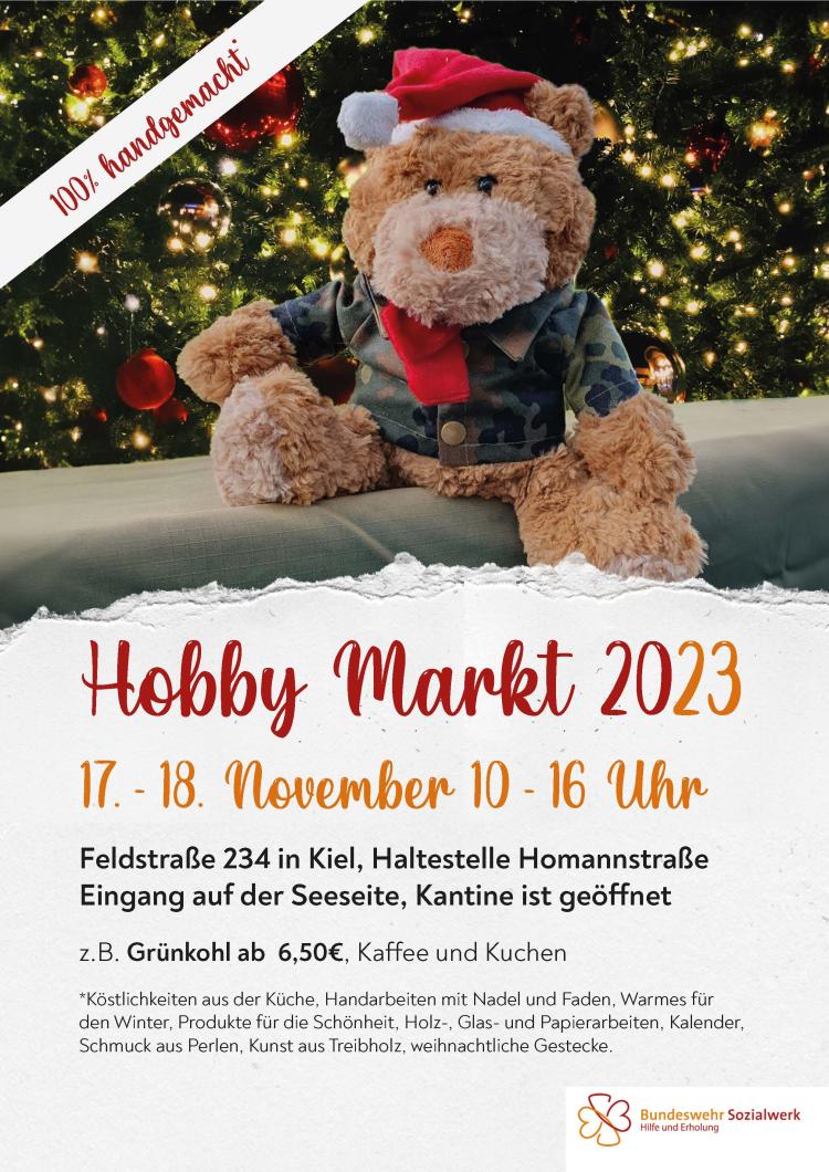 Beim Hobby Markt 2023 wird für Sorgenkinder in Bundeswehrfamilien gesammelt. Daher findet ein öffentlicher Hobby Markt statt. Die Kantine ist ebenfalls geöffnet und es werden leckere Kuchen serviert. Grünkohl gibt es ab 6.50 Euro.